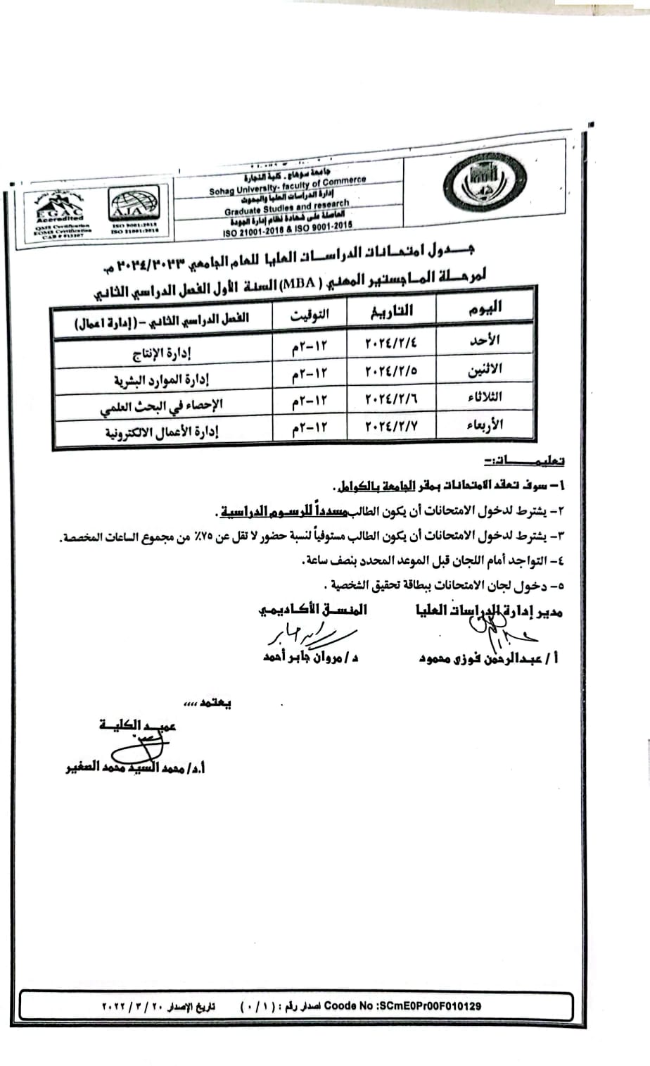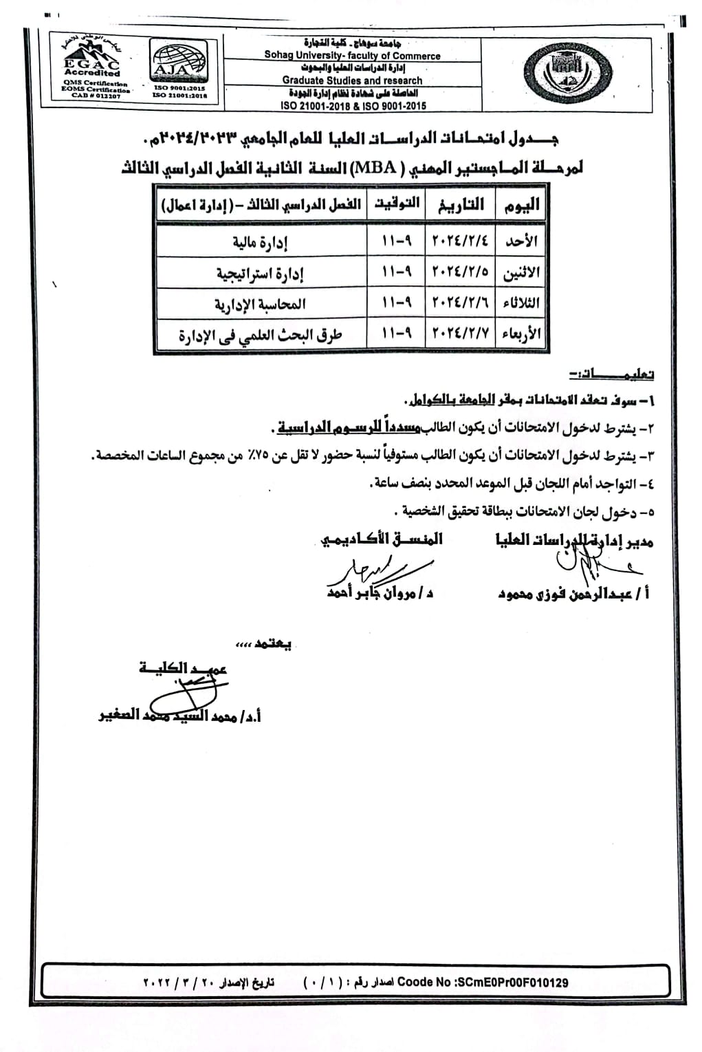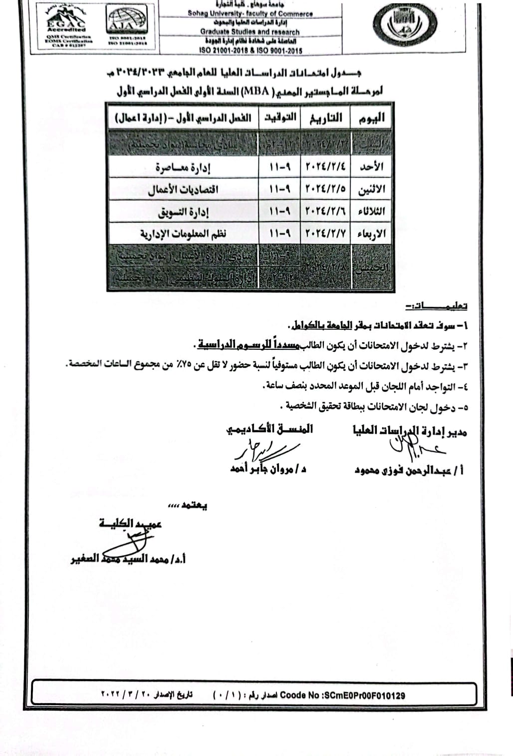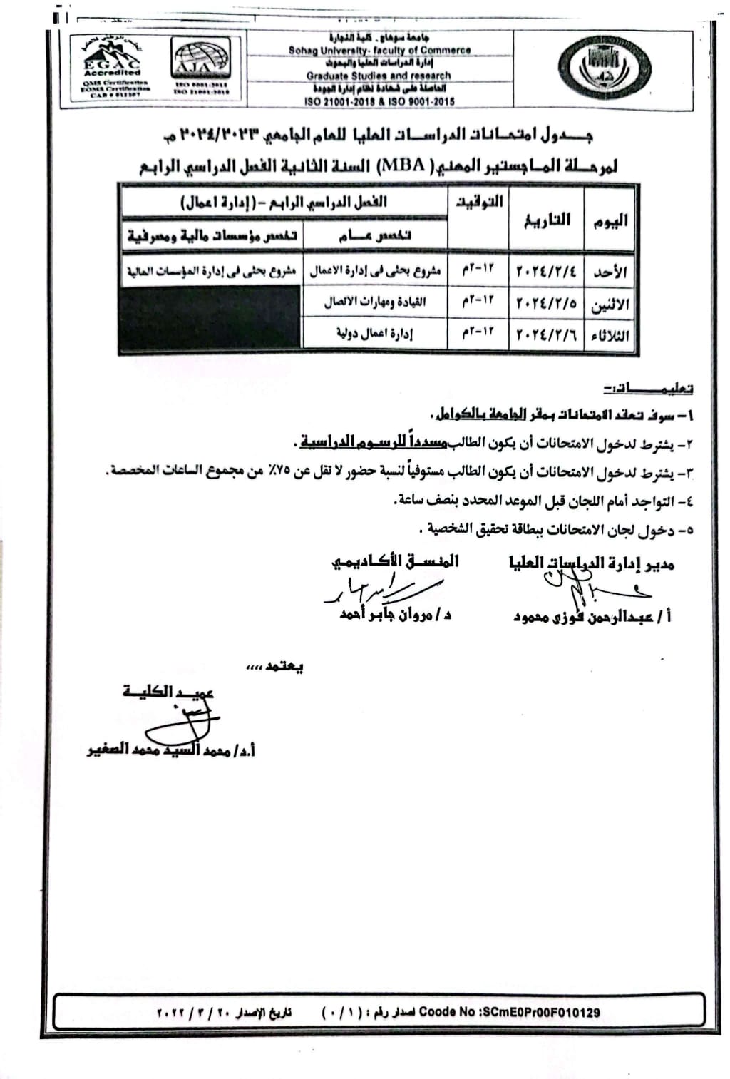 جدول الامتحانات